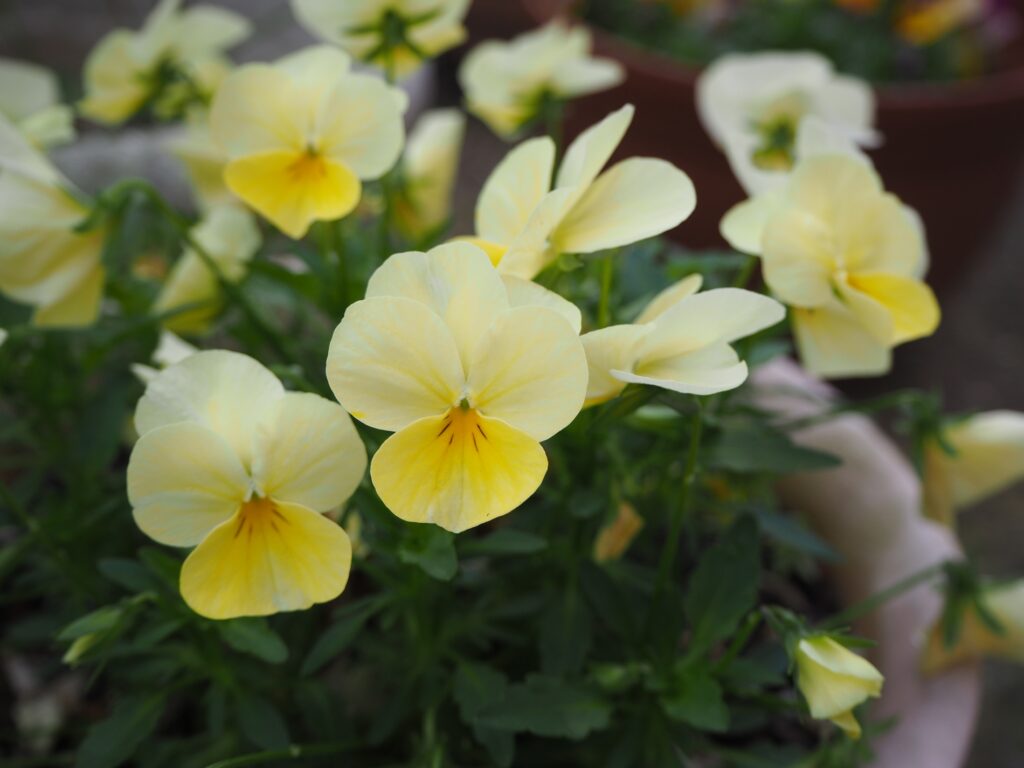 ビオラは、昨年植えていたもののこぼれ種から育った株。